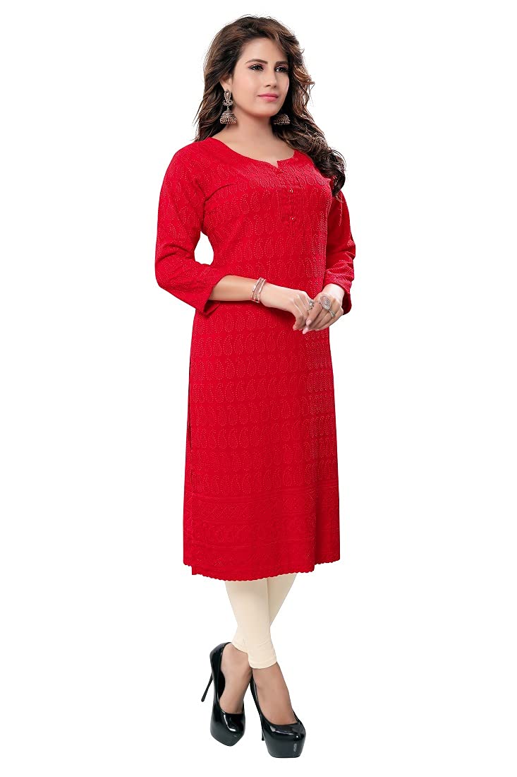 DARIKA Women’s Cotton Chikankari Straight Kurti Multiple Color in from Small to Plus Size.