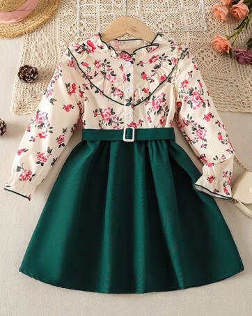 Cute floral appliqué with botton detailing on the bodice for added charm.Perfect for little girls who love stylish, thoughtfully designed outfits! Button closure with waist belt